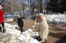 Сегодня в детском саду прошел первый весенний средник по уборке территории. Торопим весну- раскидываем снег.