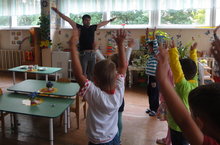 В подготовительной группе №4 провел зарядку Аббасов Д. В. папа Эльджана. Детям очень понравилось