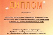 Сегодня подвели итоги городского смотра-конкурса "Профсоюз - взгляд через объектив". Первичная профсоюзная организация МАДОУ 35 награждена дипломом победителя.