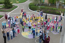 В рамках Международного дня семьи в нашем детском саду прошёл Flash-mob "Семейный хоровод" с участием воспитанников дошкольных групп, родителей и бабушек в форме солнца. В хороводе проявляется чувство единения и дружбы, взаимоуважения и взаимопонимания между членами семьи различными её поколениями».