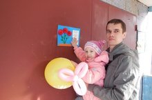 К Дню победы дети дошкольных групп с воспитателями изготовили поздравительные плакатики с поздравлениями с Днём Победы своими руками, родители вместе с детьми участвовали в этой акции и поздравили ветеранов войны, труженников тыла и жителей микрорайона, разместив свой поздравительный плакат на подъезде своего дома к 9 мая.