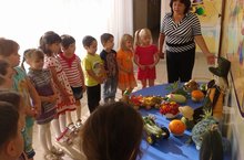На этой неделе в нашем детском саду прошла выставка поделок из овощей , выращенных на грядках нашего детского сада самими детьми. С огромным удовольствием дети мастерили различные поделки вместе со своими воспиателями.