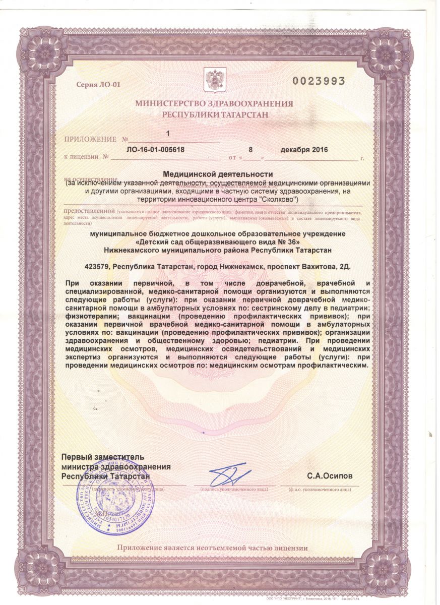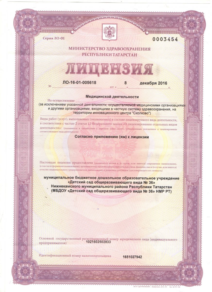 муниципальное бюджетное дошкольное образовательное учреждение «Детский сад общеразвивающего вида №36 Нижнекамского муниципального района Республики Татарстан
