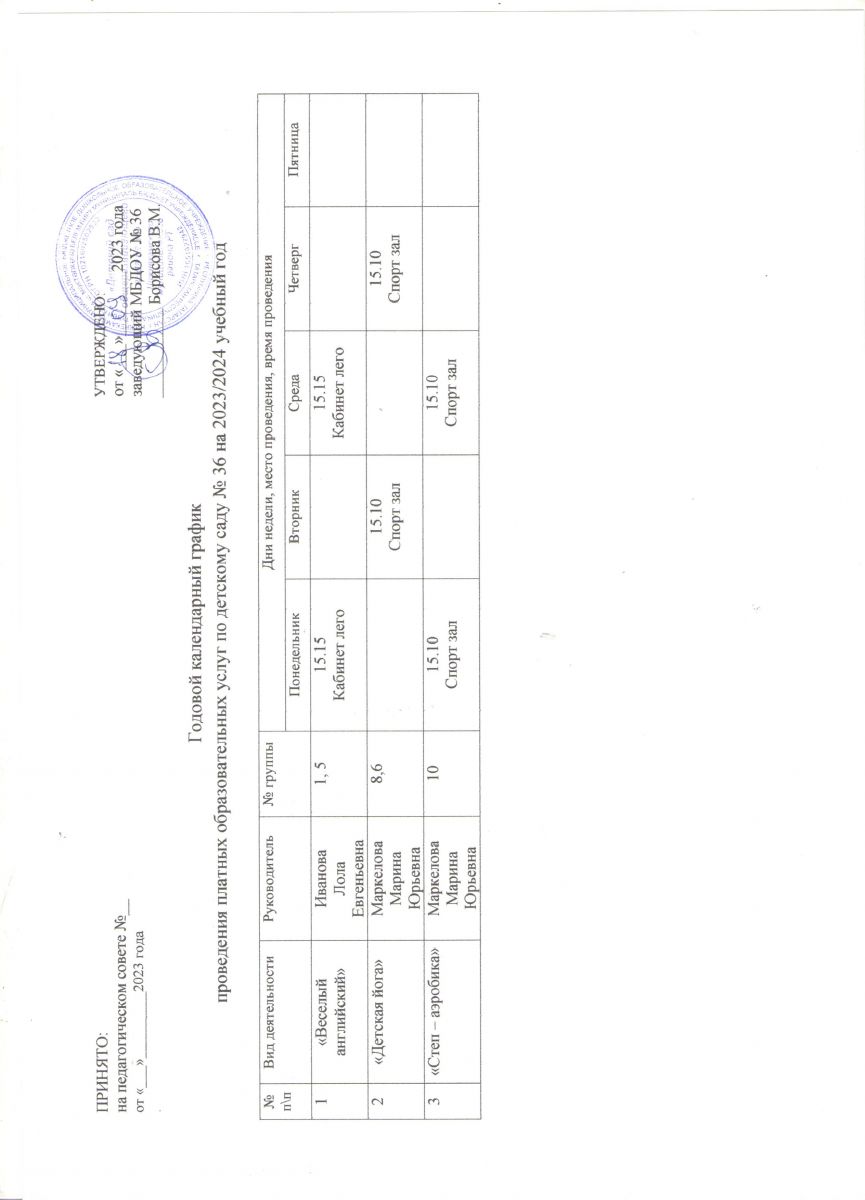 годовой календарный график проведения платных образовательных услуг