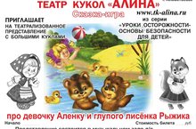 Театр кукол «Алина» г. Альметьевск, приглашает на театрализованное представление с большими куклами из серии «Уроки осторожности- основы безопасности для детей! Сказка – игра «Про девочку Алёну и глупого лисенка Рыжика».
