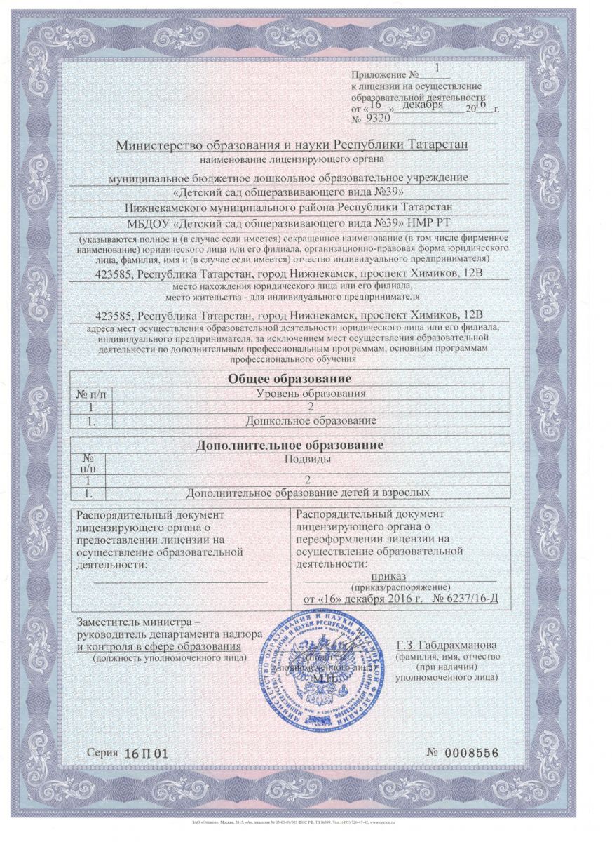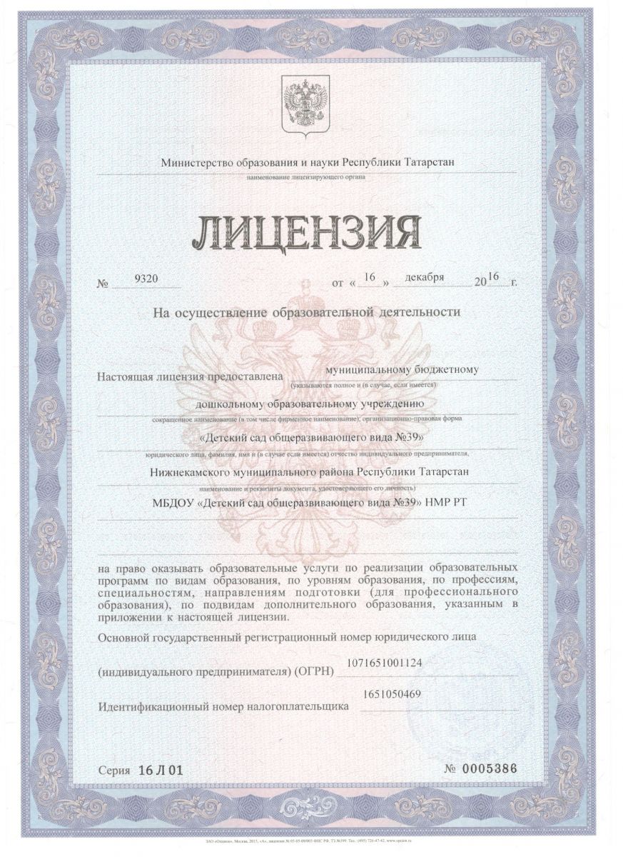| Короткое название: | МБДОУ "Детский сад общеразвивающего вида №39"НМР РТ |
