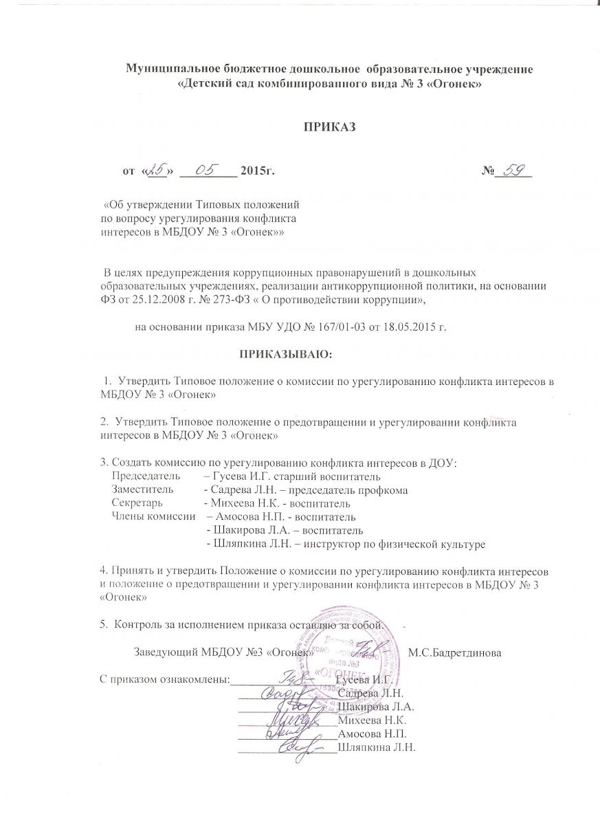 Приказ об утверждении типового положения по вопросу урегулирования конфликтов