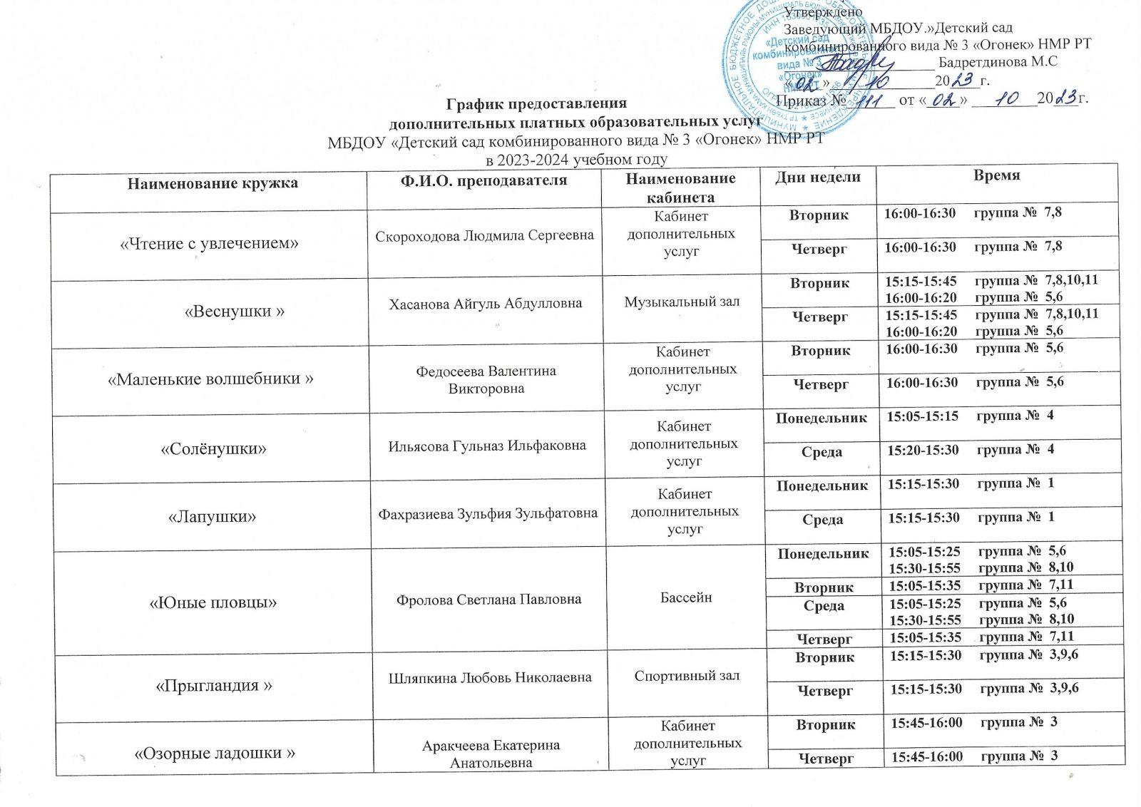 График предоставления дополнительных платных услуг 2023 -2024 г