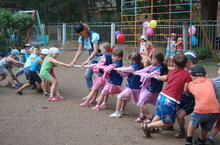 В нашем детском саду прошел замечательный национальный праздник "Сабантуй". Детям рассказали, что Сабантуй празднуют в честь окончания полевых работ (в июне). Дети соревновались в таких играх как: «Бег в мешках», «Пробеги с яйцом в ложке», «Национальная борьба», «Пробеги с коромыслом и ведрами», «Перетягивание каната», «Попади в горшок» .