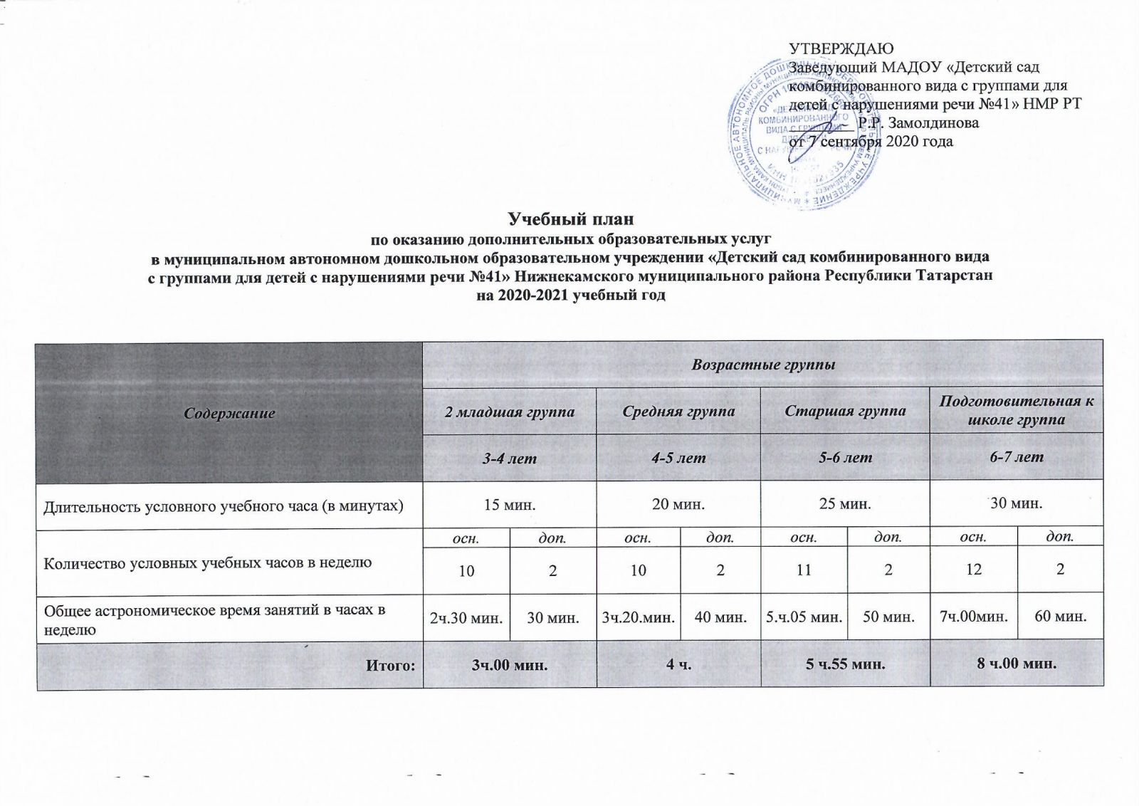 Годовой календарно- образовательный график дополнительных образовательных программ, учебный план