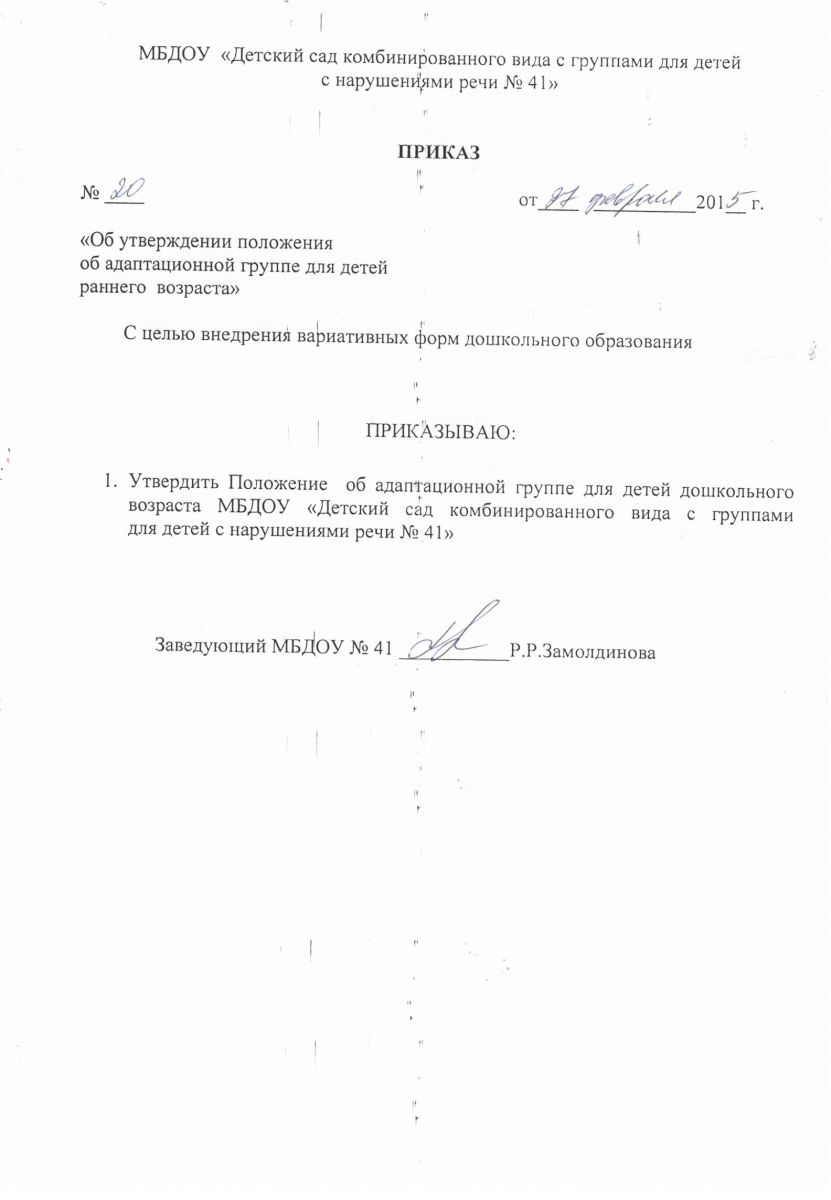 Приказ об утверждении положения о деятельности адаптационной группы