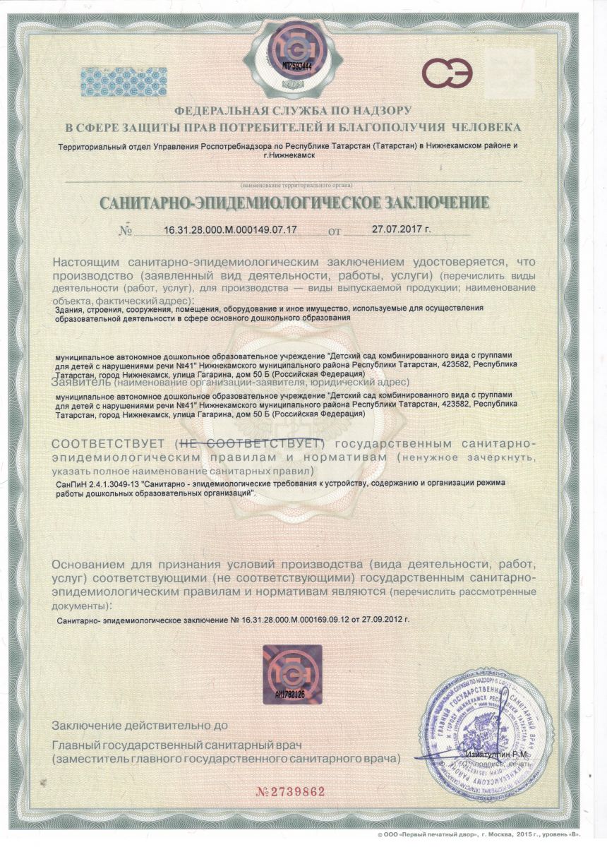 Санитарно-эпидемиологическое заключение (образовательная деятельность)