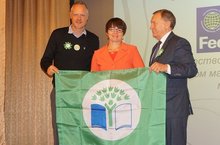Заведующая Лилия Шарипяновна приняла участие на международной конференции "Международная программа "Эко-школы/Зеленый флаг" которая проходила в городе Санкт-Петербург. Вице-директор Международной организации по экологическому образованию господин Ф.Б.Томсен вручил четвертый флаг. Коллективу детского сада желаем дальнейших успехов и благодарим за активную работу по данной программе.