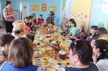 Празднование национальных праздников стала доброй традицией в нашем детском саду, вот и сегодня всем коллективом мы радуемся великому христианскому празднику ПАСХЕ. На нашем праздничном столе: куличи, крашеные яйца, пироги и сладости. ВСЕХ поздравляеем с ПАСХОЙ.