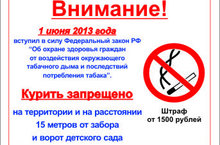 Уважаемые родители и гости нашего детского сада! С 1 июня 2014 г. вступил в силу Федеральный закон РФ "Об охране здоровья граждан от воздействия окружающего табачного дыма и последствий потребления табака"