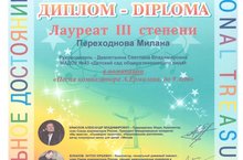 Наша воспитанница, Переходнова Милана, приняла участие в Х Международном телевизионном конкурсе в номинации "Песня композитора А. Ермолова, до 9 лет" и стала лауреатом III степени. Поздравляем!