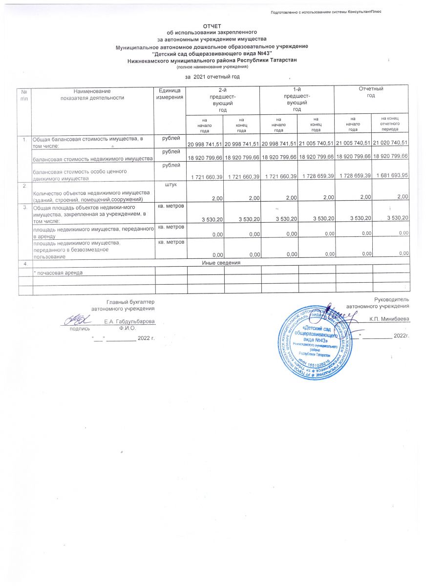 - Отчет об использовании закрепленного за автономным учреждением имущества МАДОУ №43 за 2021 год