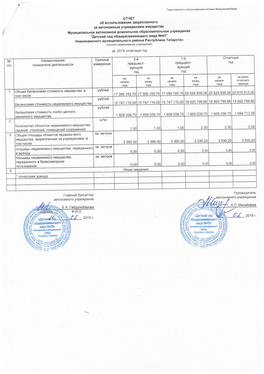 Отчет об использовании закрепленного за автономным учреждением имущества МАДОУ №43 за 2018 год