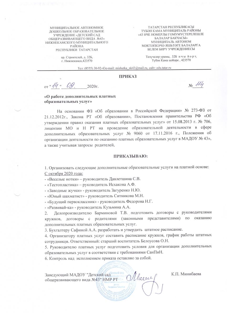 Приказ о работе дополнительных платных образовательных услуг 2020-2021 уч.год