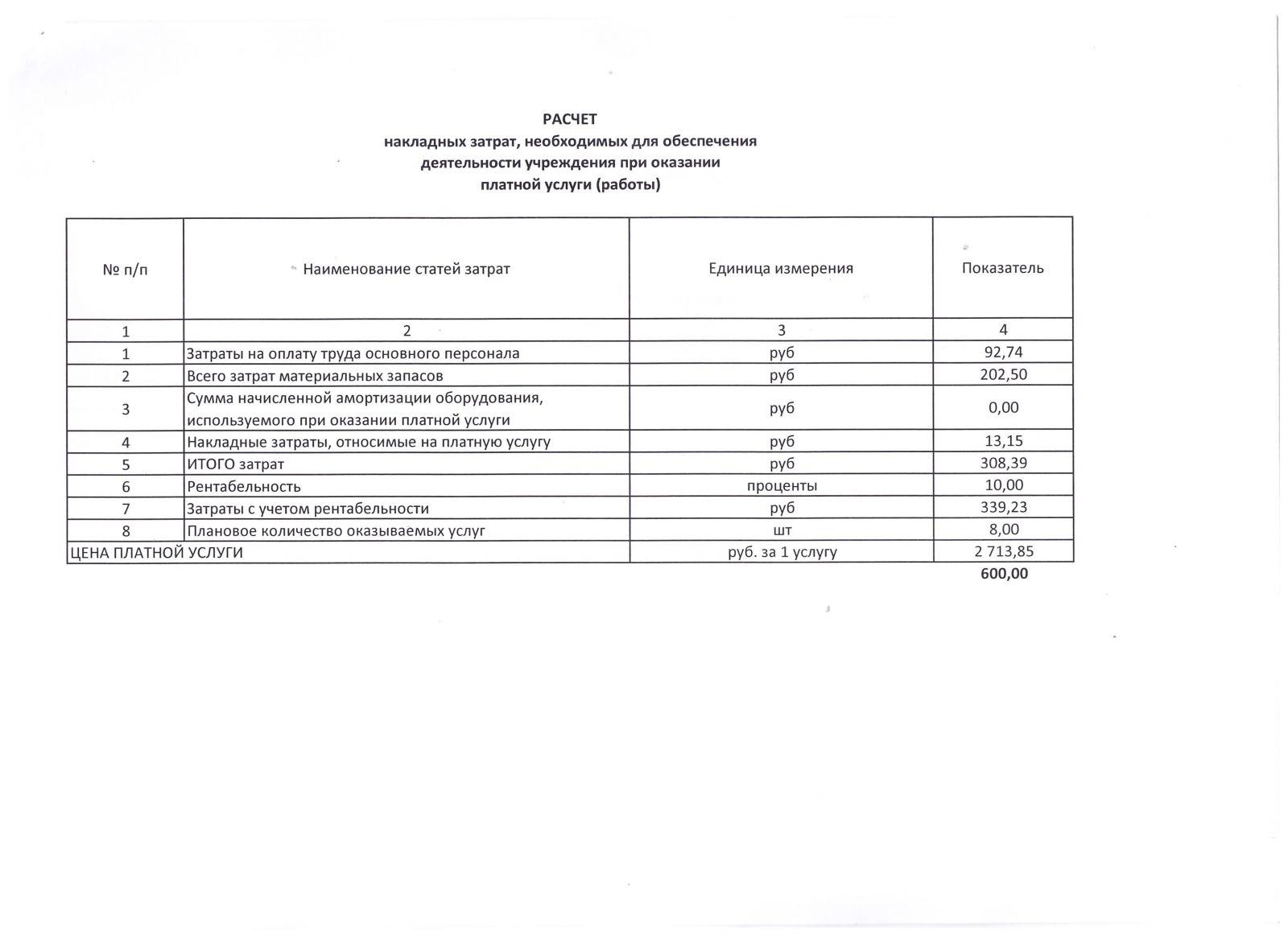 Расчет цен на оказание платной услуги 2020-2021 уч.год - кружок Будущий первоклассник