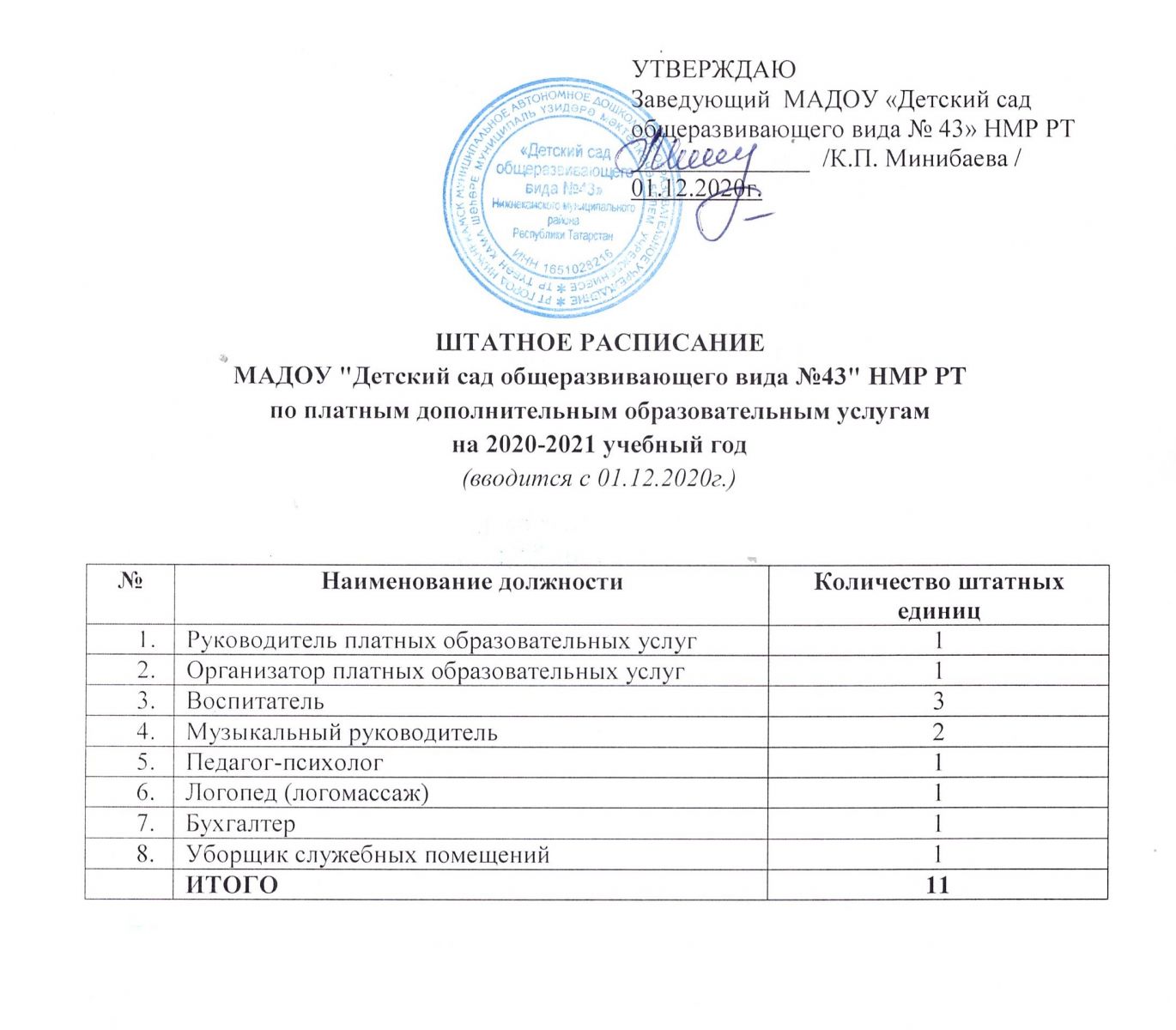 ШТАТНОЕ РАСПИСАНИЕ с 01.12.2020 по доп.услугам