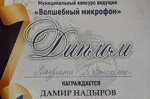 Сегодня состоялся муниципальный конкурс ведущих «Волшебный микрофон». Под руководством музыкального руководителя Салахиевой Гульнары наш воспитанник Надыров Дамир стал лауреатом 1 степени. Также и наша выпускница Гайнутдинова Лия стала лауреатом 1 степени. Гордимся нашими воспитанниками!