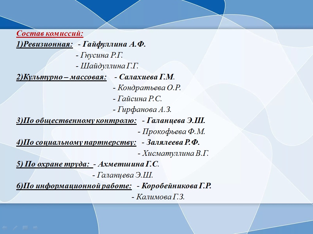 2. Камалиева Гульсирень Назятовна – заместитель пред. Профкома