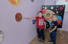 С детьми прошли беседы о лунной космической программе. В холле детского сада рассмотрели звездное небо.