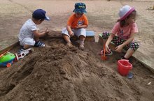 Цель занятий с песком – обогащать тактильный опыт, развивать мелкую моторику, речь, воображение, мышление, координацию движений; развивать умения отличать предметы по форме, цвету, размеру. Для игр с песком нужны: совки, формочки, некрупные игрушки для закапывания (шарики, кубики, кольца и другие геометрические формы разных цветов и двух размеров), палочки, грабельки и другое. Присоединяйтесь к нашим играм!