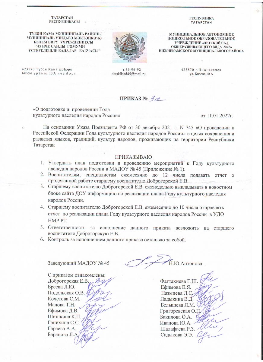 Приказ "О подготовке и проведении мероприятий, посвященных Году культурного наследия России"