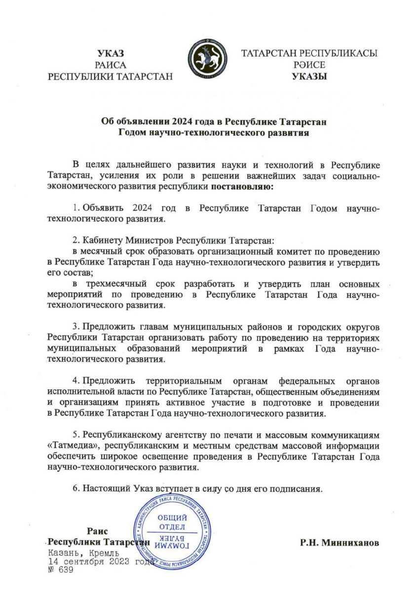 2024 год в Республике Татарстан — Год научно-технологического развития 18.01.2024