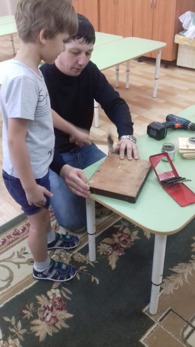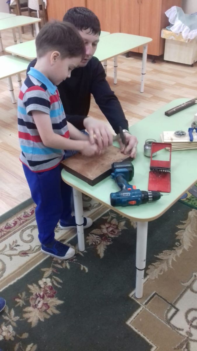 Опубликовано: 20.03.20192 нче төркемдә "Остазлар" түгәрәк эше дәвам итә. Март аенда Амерханов А. әнисе Айрат Габбасович малайлар белән бергә җимлек ясадылар. Малайлар кадак, чүкеч белән таныштылар. Аларга бик ошады.