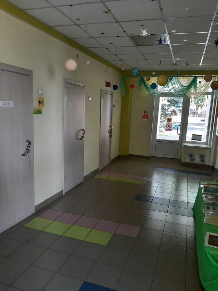 1) Вход. Доступ лиц с нарушением опорно-двигательного аппарата осуществляется через вход, оборудованный расширенным входом и скатом на первый этаж здания. При входе имеется табличка, выполненная плоско-выпуклым шрифтом Брайля с наименованием школы, установлена «Кнопка вызова для инвалидов и лиц с ограниченными возможностями здоровья», которая обеспечивает вызов дежурного вахтера для связи с администрацией.