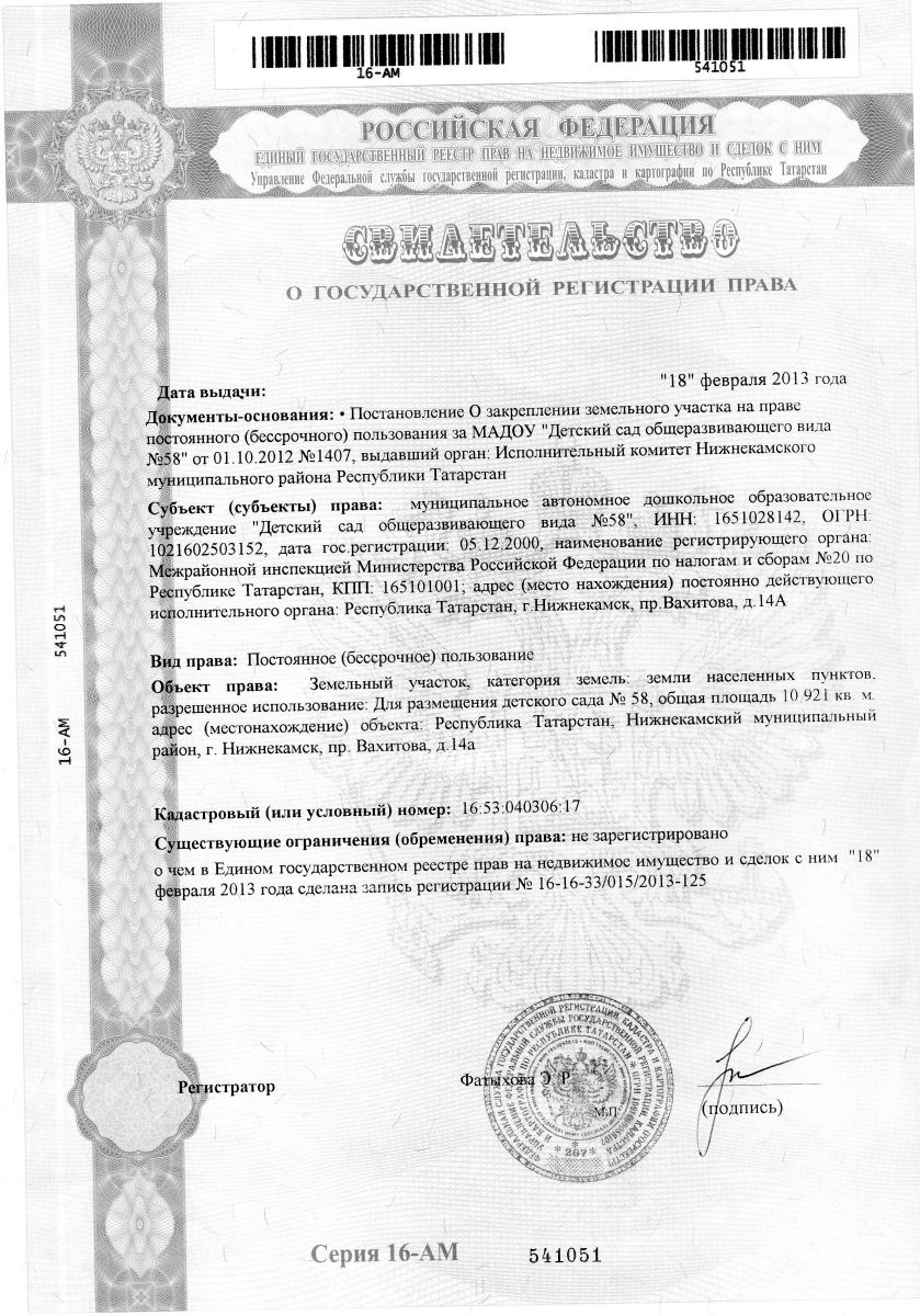 | Короткое название: | МАДОУ «Детский сад общеразвивающего вида №58 " НМР РТ |