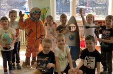 В течение этой недели в детском саду проходят тематические мероприятия, посвящённые международному Дню космонавтики. В беседах с педагогами дети узнали о человеке, покорившем космическое пространство- Ю. Гагарине, первой женщине космонавте В. Терешковой, о том как четвероногие друзья человека проложили путь к звездам, о планетах больших и маленьких, об их свойствах. Свои знания и умения дети закрепляют в творческих работах, которые получаются яркими и оригинальными. Так же в холле детского сада организована выставка творческих работ детей и их родителей «Мир космоса». Выражаем благодарность родителям за активное участие. -
