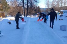 Построить снежную горку дело не хитрое на первый - взгляд, казалось бы, накидал кучу снега, залил водой - Готово! Однако не все так просто. Главное это желание и бодрый настрой.