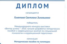 Сегодня воспитатель Гинятова Светлана Зиновьевна и старший воспитатель Ермакова Наталья Александровна приняли участие в круглом столе, проходившем в рамках Международного конкурса - выставки "Вектор успеха - 2016". Поздравляем Светлану Зиновьевну с Дипломом II степени за участие в номинации "Методическое пособие по логопедии". ТАК ДЕРЖАТЬ!