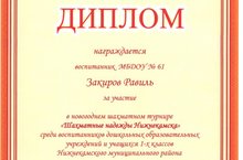 Воспитанник подготовительной к школе группы № 7 Закиров Равиль принял участие в новогоднем шахматном турнире "Шахматные надежды Нижнекамска" среди воспитанников ДОУ и учащихся 1-х классов Нижнекамского муниципального района. Молодец!