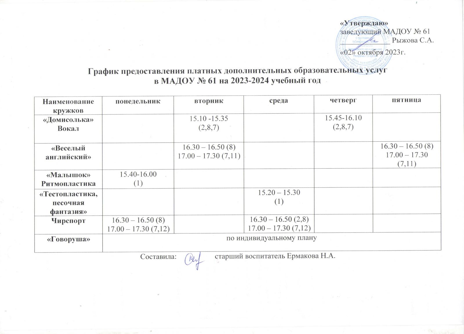 Положение о порядке оказания платных образовательных услуг в МАДОУ №61