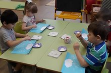 Открытую ОД по познавательному и художественно - эстетическому развитию во второй младшей группе с ЗПР №1 на тему "Выпал белый снежок " провела воспитатель Коробейникова Н.М., где дети рисовали снег нетрадиционным способом - тычком ватными палочками.