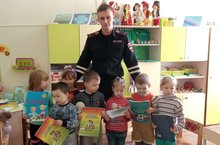 Сегодня к нам в гости приходил в гости инспектор ГИБДД. Он провёл познавательную беседу с детьми старших и подготовительных групп на тему " Безопасность на дороге", показал интересные мультфильмы и подарил ребятам книги по правилам дорожного движения.