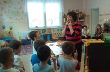 В детском саду прошли показательные занятия воспитателем Нугмановой Л.Г. для студентов педагогического колледжа. Дети старшей группы с ЗПР продемонстрировали свои знания, умения в художественно-эстетическом творчестве. Студентам были продемонстрированы разнообразные методы коллективной работы по аппликации "Теремок-теремок".