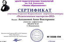 Аппакова Анна Викторовна учитель - дефектолог участвовала во всероссийском конкурсе "Педагогическое мастерство - 2012 год" в номинации "Эссе педагогической деятельности". Поздравляем с получением сертификата!!!!