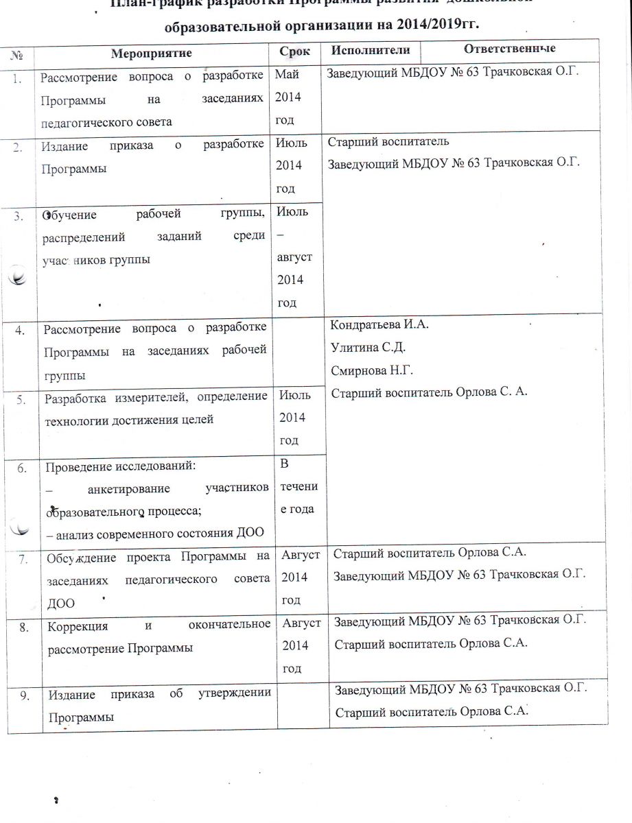 План-график разработки программы развития