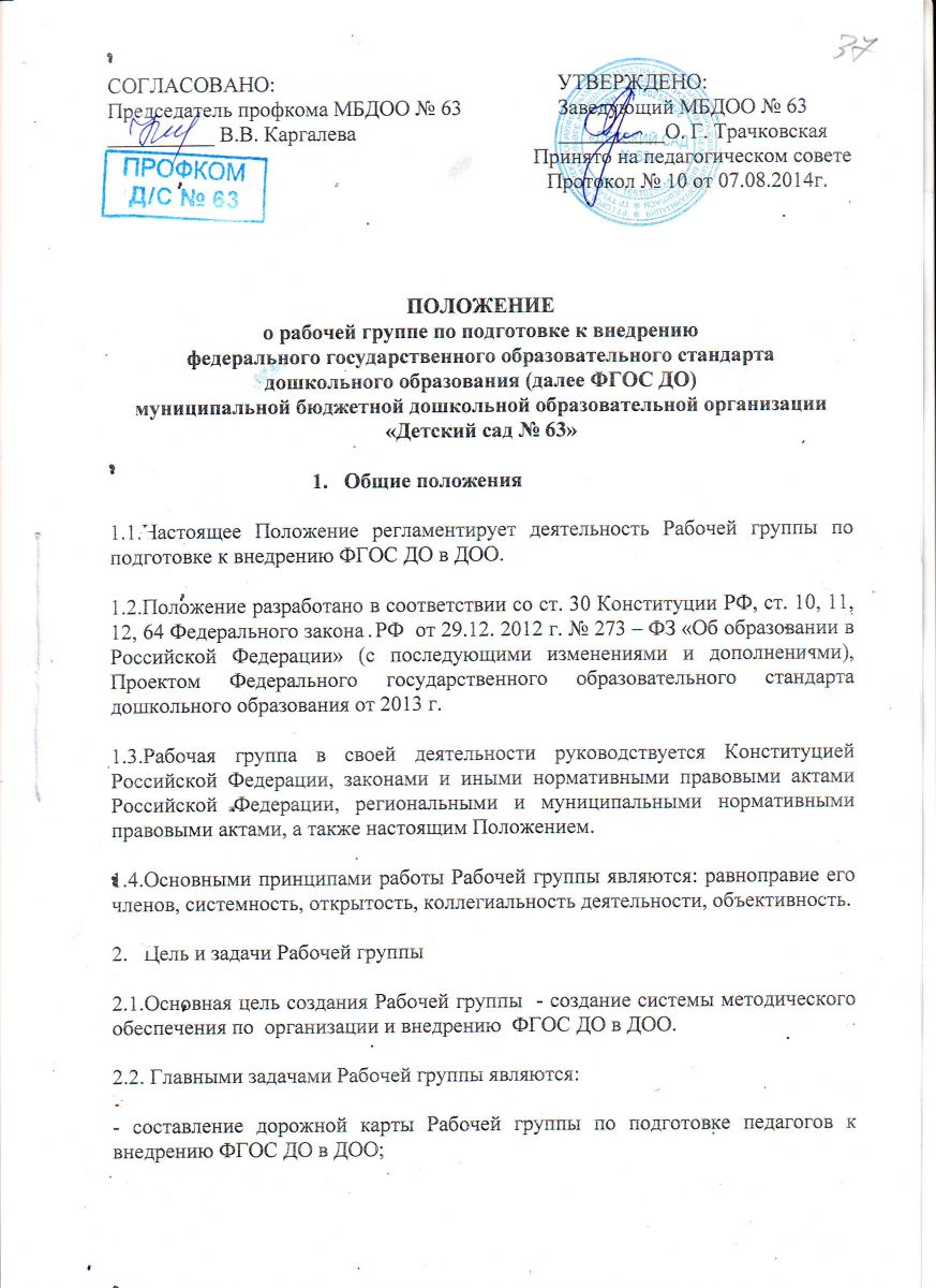 Положение о рабочей группе МБДОУ № 63