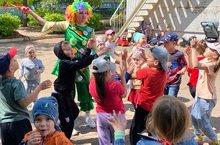 Весело и дружно отметили праздник, посвященный Дню защиты детей вместе с клоуном Клепой. Задорные соревнования "Пронеси воду", "Перетягивание каната", народные подвижные игры, флешмоб позволили детям проявить ловкость, командный дух, сноровку. В завершении праздника устроили рисование на асфальте "Счастливое детство" и шоу мыльных пузырей.