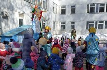 В детском саду прошел праздник "Масленица". Ребята зазывали солнышко, участвовали в эстафетах, народных играх, танцевали. А больше всего понравилось детям лакомиться главным угощением праздника - блинами.