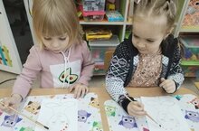 Затем предложила детям выполнить творческое задание: рисование - игра в технике "кляксография" на развитие речевого дыхания.