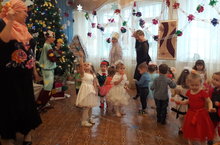 Во всех группах по графику проводятся новогодние утренники, в ходе которых сказочные персонажи вовлекают воспитанников в увлекательные ситуации. Дети с удовольствием помогают добрым героям преодолеть припятствия. Новогодние стихи и песни способствуют встрече нового года.