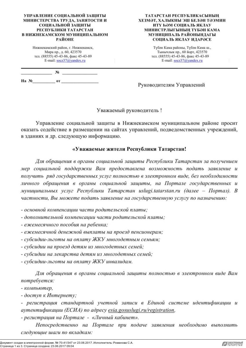 Регламент подачи заявления на государственную услугу на Портале государственных муниципальных услуг Республики Татарстан 29.06.2017